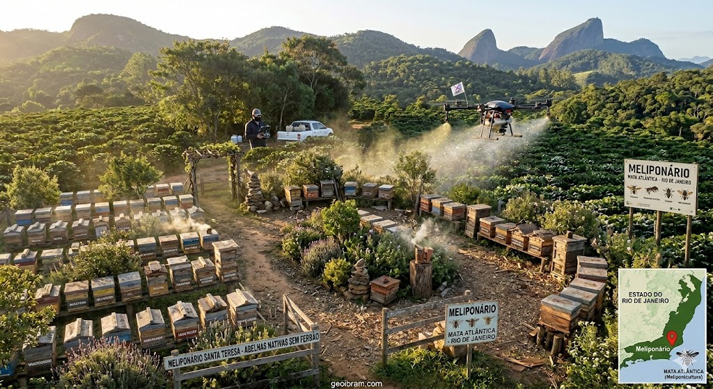 A plataforma GeoIBRAM, do Instituto Brasileiro de Apicultura e Meliponicultura, organiza e potencializa essa vigilância. Apicultores, meliponicultores, moradores rurais e produtores cadastram suas áreas com georreferenciamento e hash criptográfico. O operador que não consultou o mapa antes de voar não tem como alegar desconhecimento das áreas protegidas cadastradas.
